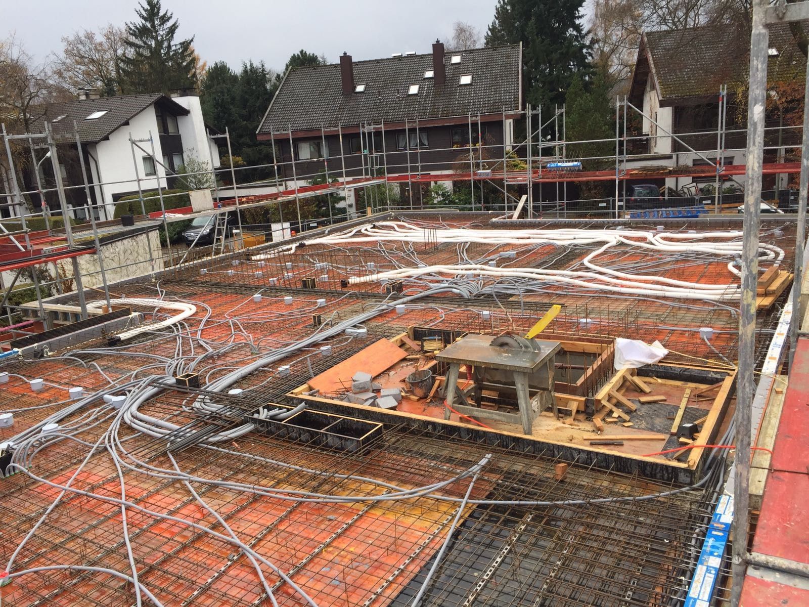 Aktuell finden die Einlegearbeiten in der Erdgeschossdecke statt um zeitnah mit den Betonier arbeiten zu beginnen.