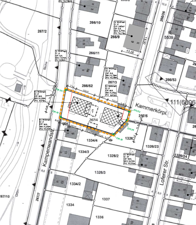 Der Bauantrag für zwei Mehrfamilienhäusern mit Tiefgarage an der Kampenwandstr. 7 in München wurde bei der Lokalbaukommission München eingereicht.