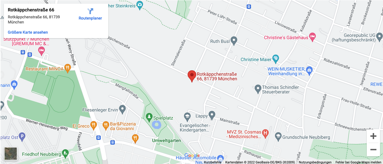 Die Rotkäppchenstraße ist auf Höhe des Neubauprojektes eine reine Anliegerstraße und deshalb als verkehrsberuhigt zu bezeichnen. Besonders bestechend sind die gegenüberliegenden, unverbaubaren Felder und Wiesen, die dem Grundstück eine tolle Belichtung über den Tag ermöglichen. Dieses sehr ruhige Wohngebiet wird geprägt durch Einfamilienhäuser sowie kleine und exklusive Mehrfamilienhäuser mit hübschen Gärten und ausreichend Grünflächen.