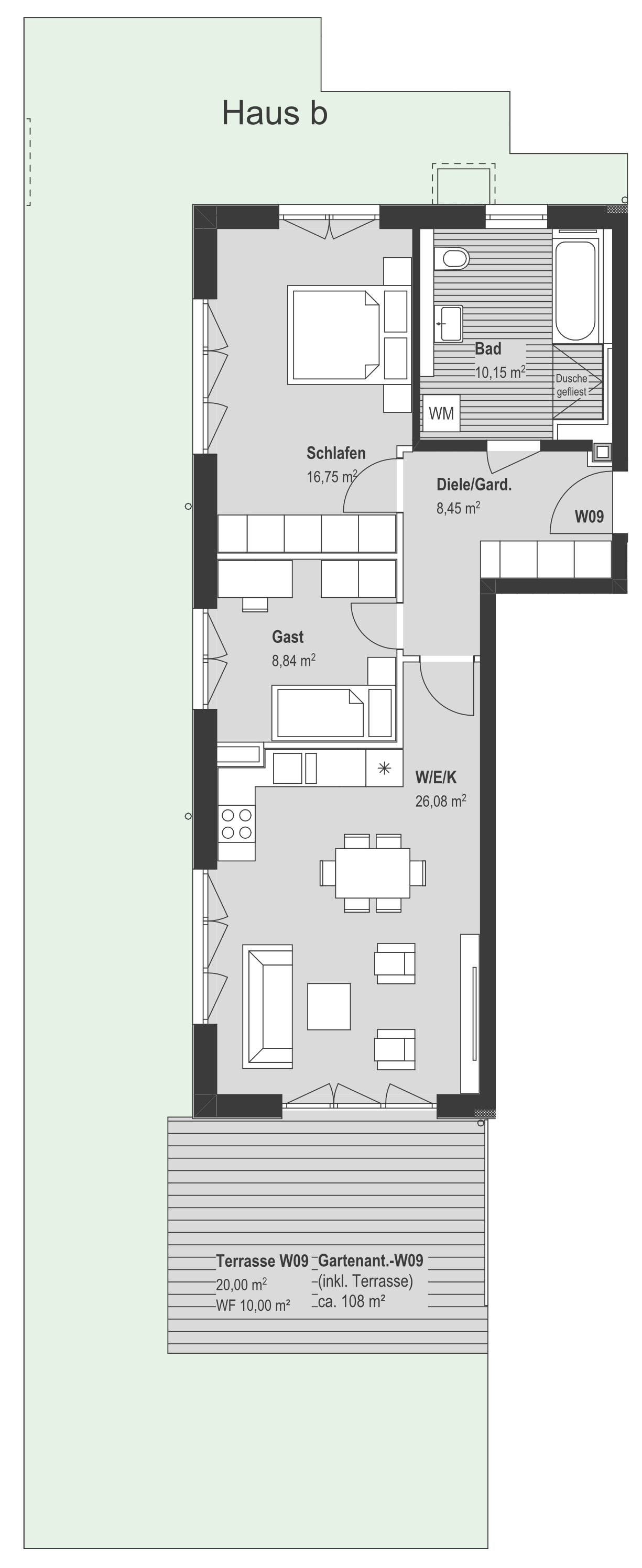 Terrasse W09 | ca. 10,00 m² | ca. 20,00 m² |