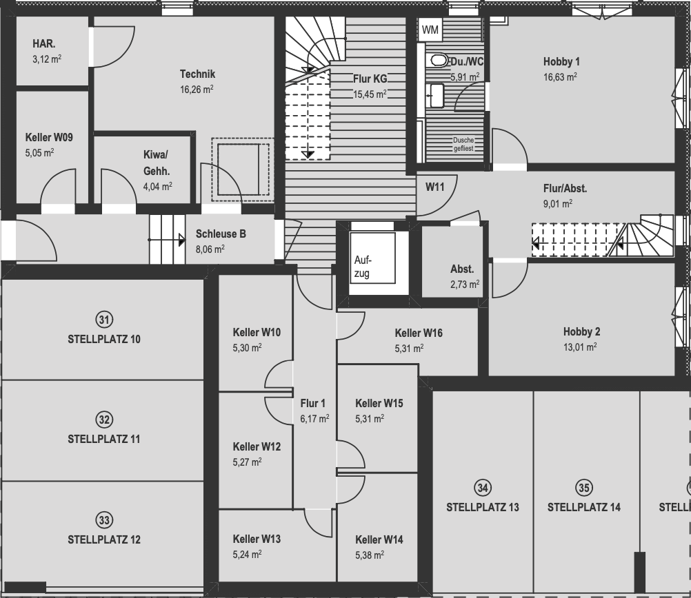 KELLERGESCHOSS | Verkaufsfläche m² | Grundfläche m² |