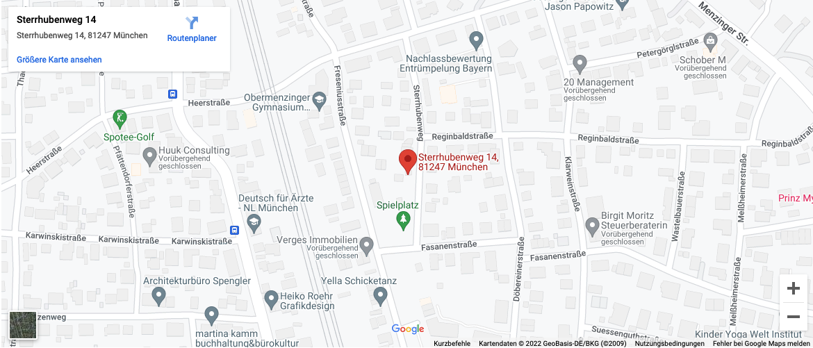Die ruhige Lage am Sterrhubenweg bietet optimale Wohnbedingungen. Innerhalb von ca. 8 Gehminuten erreicht man die S-Bahn Station Obermenzing die einen innerhalb von 10 Minuten stressfrei in die Innenstadt fährt.